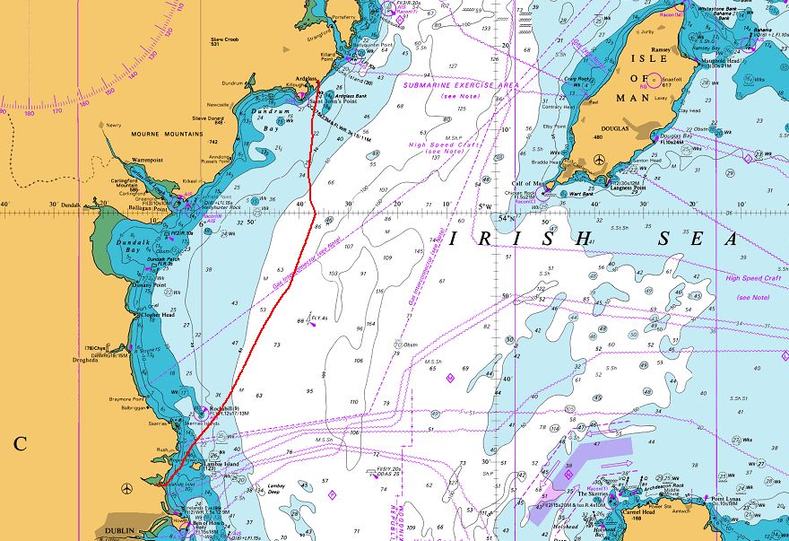 Encore une étape au portant, que l'on peut qualifier de confortable, dans les conditions "à la gomme": sur la route directe, vent du sud à 130°, donc sous le vent le génois porte mal ou pas du tout, mais c'est un peu trop pour tangonner au vent (entre 150 et 180° idéalement), avec de toute façon avec une surface limitée. Mais quelques moutons sur l'eau ne permettent pas d'envoyer le spi, LA solution puisqu'il est fait pour ça, sans générer quelques foudres. On ne peut espérer les frissons d'aise du bateau qui file "à vive allure"!
