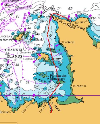 Le lendemain, en principe vent de SW ou W 10 15 noeuds, ce fut vrai jusqu'au sud-est de Jersey, mais après pétole totale jusqu'à ce que le Raz Blanchard soit passé. Là, pour les 20 derniers milles, belles conditions au près bon plein. Cherbourg n'offrant à nos yeux aucun intéret (et déjà "visité" en 2015) nous n'avons pas mis les pieds hors de la marina et versé notre pemière "taxe de séjour"