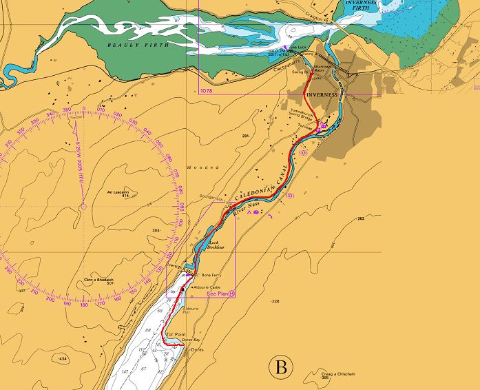 Premier bout de chemin jusqu'au Loch Ness, dans une atmosphère à la hauteur de la légende des lieux, et mouillage dans la première baie a priori propice puisque calme plat, tout près de la rive, profondeur du loch oblige. Au moment de débarquer pour se dégourdir les jambes, un vent sérieux se lève, du "large" évidemment, provoquant un lent mais inexorable dérapage vers la "plage". Finalement amarrage laborieux à ce qui parait être un coffre digne de foi et point de descente à terre.