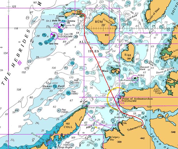 Canna nous avait été présentée par l'équipage de Safire comme LA small isle à visiter. Et ce sera sans vent (et surtout sans patience!) que l'on passera le "redoutable" Adnamurchan Point (jusqu'à ce jour, il n'aura mérité vaguement ce qualificatif qu'une seule fois sur les cinq passages).