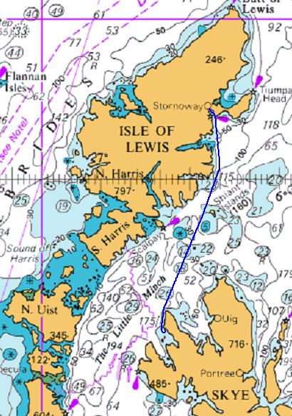 Le plan initial est d'aller à Loch Bracadale sur Skye via une étape à Rodel, tout au sud de South Harris. Mais 1) le vent est plus ouest que nord-ouest, ce qui suppose du près, plutôt banni à bord. 2) on a vu Rodel en voiture, rien de bien sexy même si c'est un mouillage populaire. Et donc option Ardmore Bay, à l'entrée du Loch Dunvegan, rien de particulier dans les guides, mais une ancre sur la carte, et a priori bien orientée, cela suffit pour en faire un objectif louable. Premier aperçu de la côte ouest de Skye, mais rien d'extraordinaire.