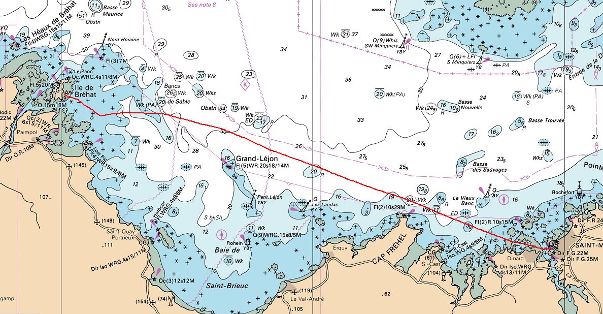 Le 19 mai les gribs annoncent un flux d'est persistant à partir du jeudi 25. Donc foin du jardin monopolisateur de toutes les énergies, et c'est parti pour se positionner au bon endroit pour profiter de cette aubaine. Après beaucoup de tergiversations devant les divergences des modèles Arpège et GFS, faisant hésiter entre route vers Brehat, ou pour changer un peu, vers Aurigny, ce sera descente de la Rance le samedi 20, une nuit en catimini au Bas Sablons, et départ le dimanche à l'aube, pour une n+1 ième étape vers Bréhat. Un peu de moteur, puis spi, beau temps, bref bon début.