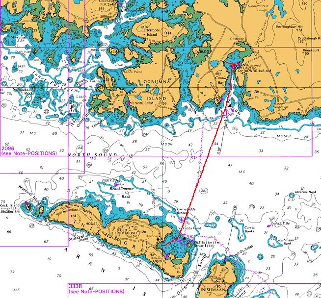 A ce niveau là de la côte irlandaise, si on continue vers le nord, il n'y a plus de marina (et les ressources en eau, gasoil, laverie, douches qui vont avec) avant l'Ulster! Avant ce désert civilisationnel, il reste Galway, trop loin à l'est, et Rosaveel, à 12 milles, l'un des ports de départ des ferries pour les Iles d'Aran, et doté, selon les guides, d'une marina flambant neuve! C'est donc la dernière station avant le néant, par conséquent incontournable.