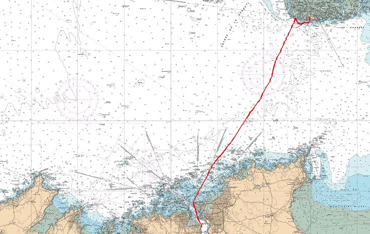 Conditions quasi idéales pour une remise en jambe: grisaille mais pas trop froid, 10 noeuds ESE donc près bon plein, mer belle, carène propre, et donc vitesse honorable jugée trop élevée pour envisager la pêche (ou pure flemme tout simplement)