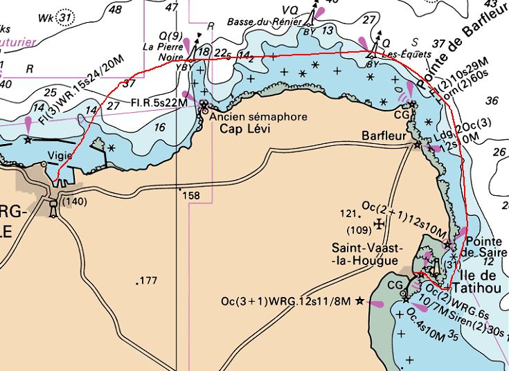 Un peu de spi, puis pétole, puis un peu de vent passé Barfleur, beau temps, une étape plaisante.